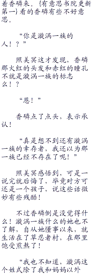 “那个·美女姐姐!!我叫漩涡香磷!!请、请多指教!”