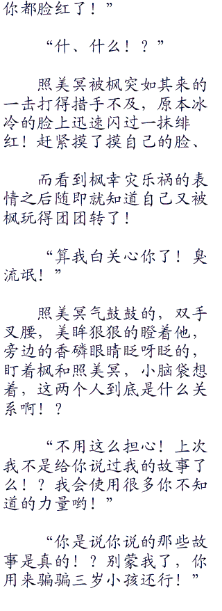 刚想回答自己没事之类的,却听见枫又大大咧咧的说道、