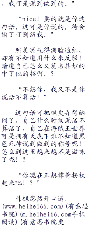 不过照美冥也不慌不忙,她就不信枫说的那些东西是真的,什么海贼什么海军之类的,怎么可能存在嘛!