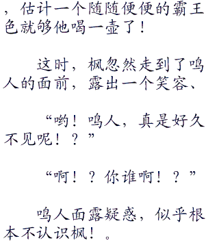 枫撇了撇嘴,要不是因为白的经历和他自己有些类似的话,枫才不会管这臭档子事呢!