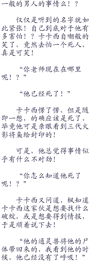 卡卡西眉头皱得更紧了,不知为何,他的手心已经开始出汗,是因为听到了那个宛如噩梦