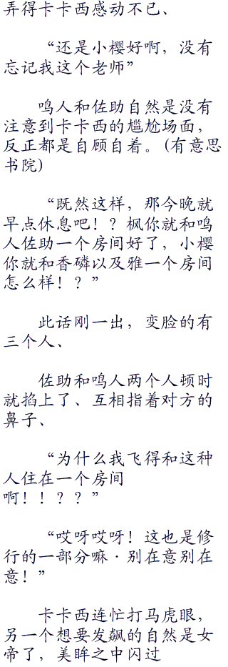 卡卡西将鸣人和佐助都叫了过来,小樱这个时候似乎和香磷混熟了,不过女帝依旧没有搭理谁!傲得一塌糊涂!