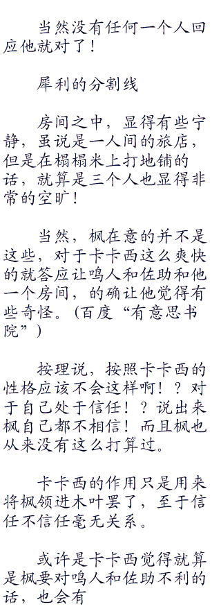 或许就是因为这种微妙的感觉,才让卡卡西相信了枫现如今所说的一切了吧!?