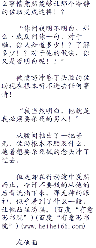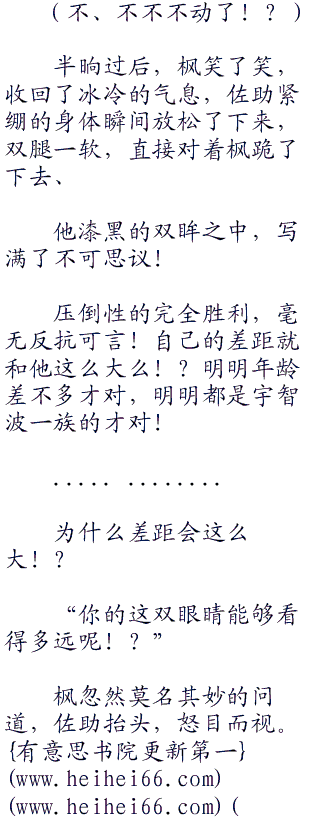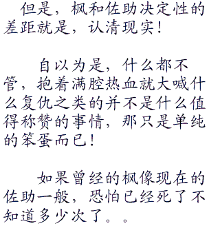 枫的回答让佐助快气炸了,头上暴起的青筋让他原本帅气的脸颊变成了无比的凶相!