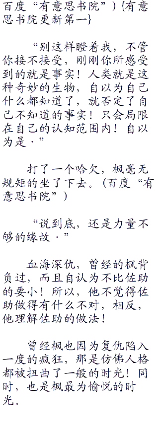 只是不知道是阿修罗和因陀罗的查克拉在作祟还是所谓的孽缘呢!?不过既然他们两个要吵架的话,枫也乐的清闲!