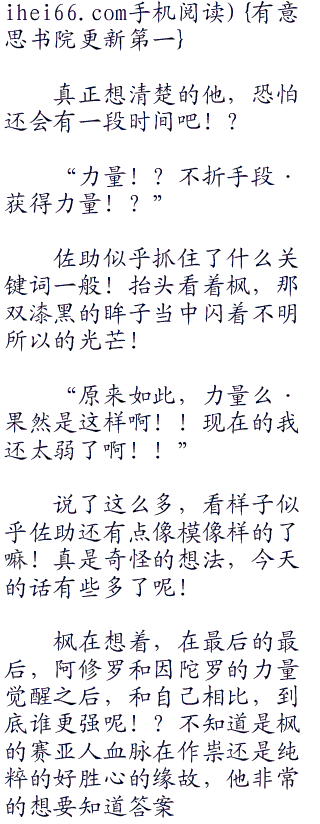 枫邪魅的笑了笑,今天自己是怎么了,还真是稀奇,竟然和二柱子说了这么多,是因为同为复仇者的缘故么!?
