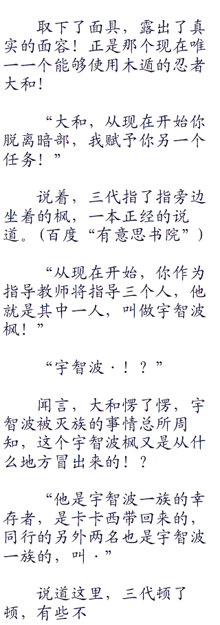 卡卡西没有过问,而是一个人退了回去!虽然不知道三代出于什么理由,但是那毕竟他做出的判断!