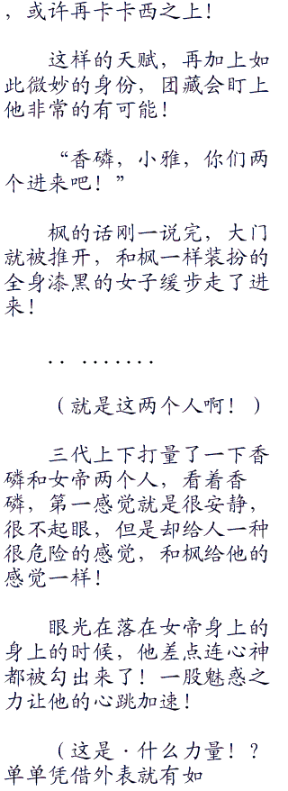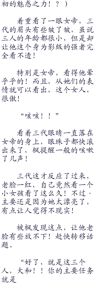开玩笑,枭就是老子好不好,枫白了三代一眼!这个小老头到底在想些什么!