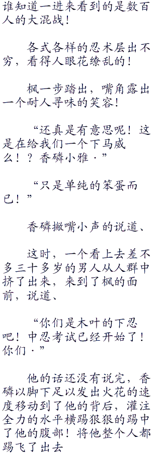 枫一脸的黑线,这tm谁叫出来的啊!?最强新人,我呸!老子连木叶都能够给你灭了,你tm叫老子最强新人!枫已经不想吐槽!