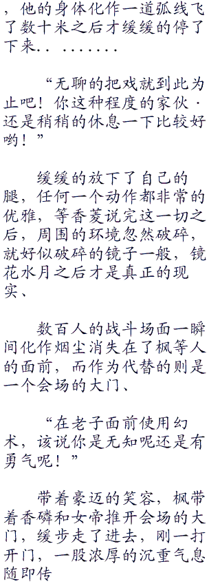 这和逗比打架,除非枫脑袋秀逗了,现在他可没有功夫陪他玩!趁着小李被转移注意力的这个瞬间,枫就带着香磷和女帝进入了会场、