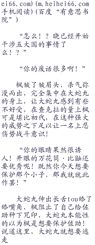 这样想到,枫随即加快了速度,这一次,大蛇丸他绝对逃不了了!