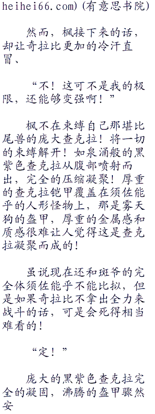 毫无疑问,就算是一座小型的山峰被奇拉比的一击给击中的话都会瞬间土崩瓦解吧!但是枫却是以最为疯狂的硬碰硬的方式接下!