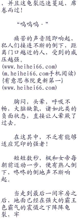牢房之中,传来了无数的哀嚎,原本安静的走廊瞬间因为君麻吕等一干人等的步入而沸腾了起来,带着如何黑蛇一般伤口的手臂透过牢房的特质金属栏杆伸出来,场面无比的恐怖!