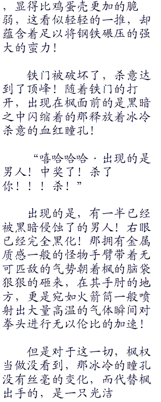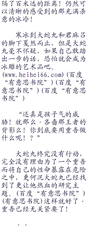 不然,第一个躺在血泊里的绝对不是重吾,而是一条妄图染指那旷阔无垠的天空的好高骛远的企图化龙的自大之蛇罢了!