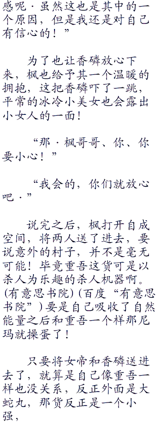 “接下来我不知道会发生什么事情!!或许会有什么我不知道的危险,我先把你们送入自成世界吧!?”