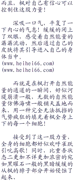 深吸一口气,似乎在感受着大自然一般,风的流动,阳光的照射,动植物的呼吸,透过枫全身上下的每一个毛孔传入了进来,那是种不同于见闻色霸气的感官力量!