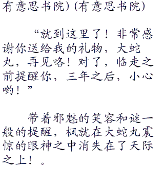 那是对枫的恐惧,对刚刚发生的一切的恐惧!同时,看到的还有敬畏,看样子大蛇丸的的确确是很害怕枫!