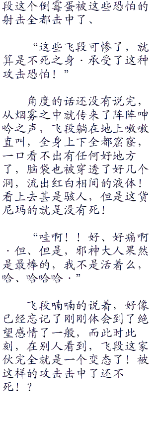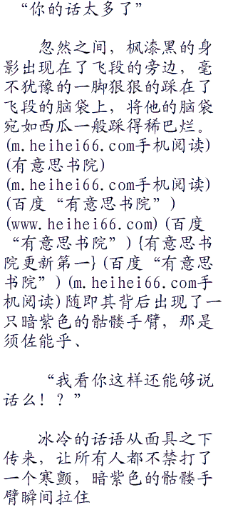 所以,了解枫的人都不会没事闲得蛋疼的去开枫的玩笑,毕竟那可不好笑,就算是平常能和鼬开开玩笑的是干柿鬼鲛也不想起轻易招惹枫,但是现在没想到的是飞段这个货却作死的去招惹了最不该招惹的人,所以一时间,几乎所有人看着飞段的表情都变了,一脸的同情,他们本来就不是什么大善人,再加上飞段的态度本身就太嚣张,所以根本就不会存在所谓的什么同情!