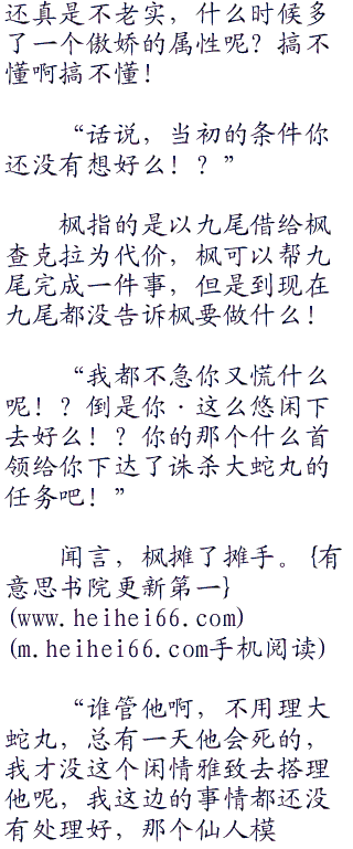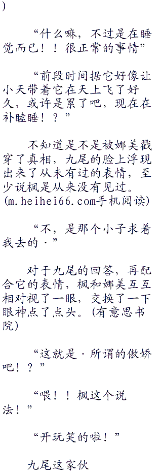枫用笑着伸出食指在娜美的鼻梁上挂了一下,弄得娜美俏皮的脸上多出了那么一丝的红润!