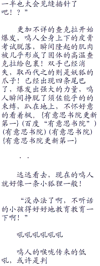 “那、那个就是自来也大人说的妖狐外衣么·意见出现三条尾巴了啊!!”