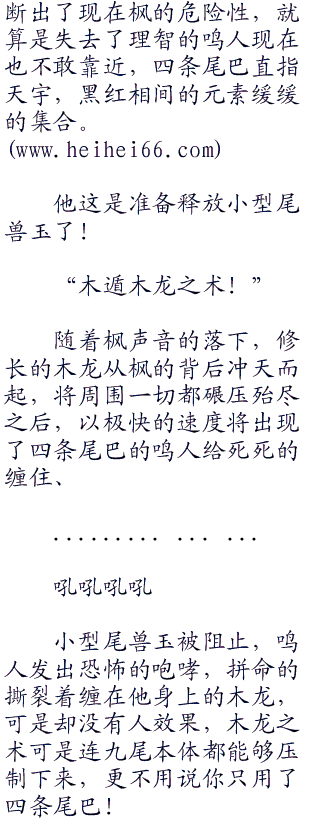冲天而起的查克拉,比起刚刚更加的不详和纯粹!三条尾巴好似能够将一切都破坏一般,释放出狂暴的气息!鸣人的瞳孔之中,逐渐失去了冷静,取而代之的是枫见过无数次的九喇嘛的瞳孔,要开始尾兽化了么!?