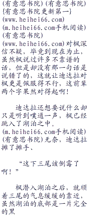 而枫则是躺在迪达拉的背后,双眼紧闭,似乎在假寐!但是迪达拉所不知道的是,枫却是一直在用见闻色的霸气探查着,在这深不见底的湖泊中搜索着,三尾无意和其他尾兽一样是查克拉的集合体,这种气息,几乎是在恨短时间内就可以找得到!