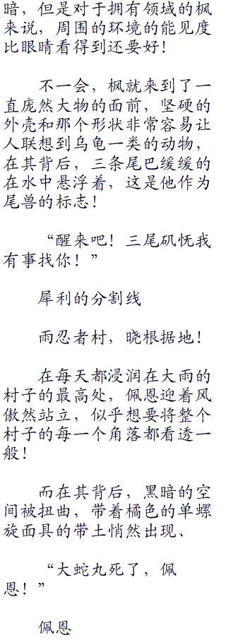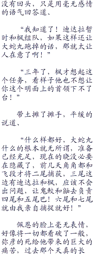“二四零”“放心,迪达拉·这三尾一定在这里,不过现在没有现身罢了!”