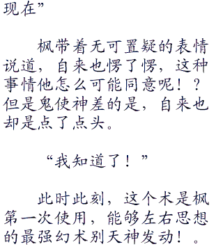 这一瞬间,枫闪过一丝的狡黠,脸上猛然一变,似乎想到了什么一般、