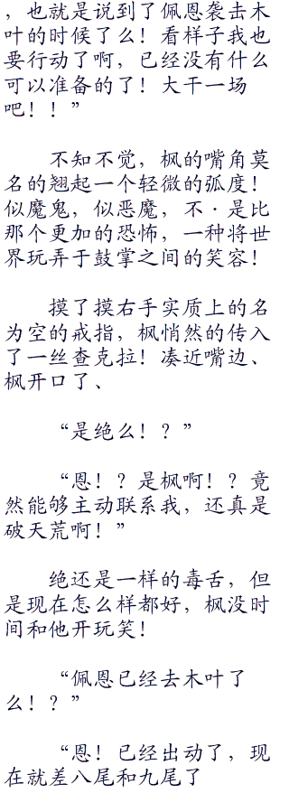 站在他们面前的是晓现在名义上的首领,天道佩恩!他们会出现在这里,那么目标就已经不言而喻了,捕获九尾的时间到了!
