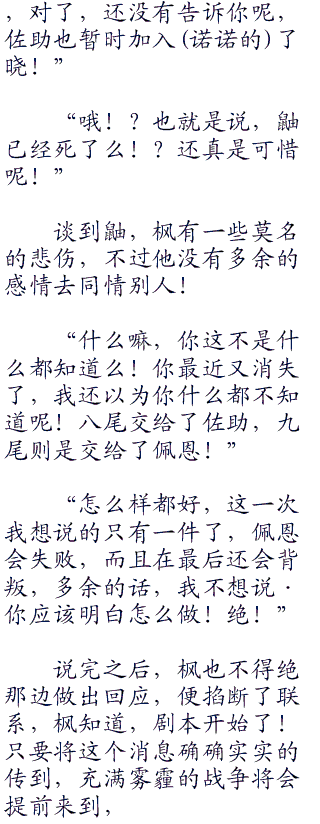 “不过,我们也有我们的做法!八尾已经让佐助去捕捉了,现在只需要将九尾捕获·计划就能够实施!不能在这个时候出差错!”