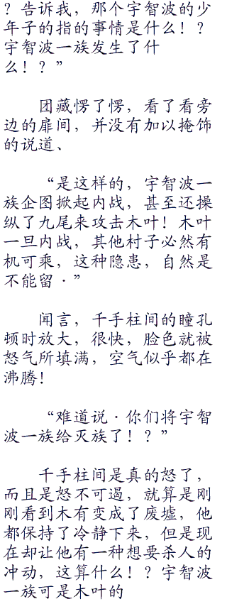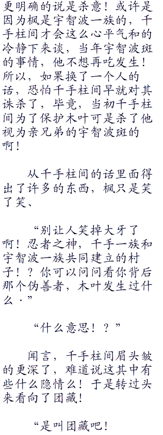 闻言,团藏面色抖了抖,这可是在初代和二代面前,可不敢出什么篓子!随即矢口否认、