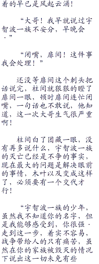 千手柱间一脸的阴沉,听了团藏的话之后,半晌才开口说道。