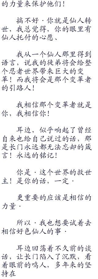 长门的话,让鸣人眉头紧皱起来,手中握着的自来也写过的书也是不自然的紧握了起来,想起和曾经自来也修行的时光,想起自来也托付给自己的梦想,鸣人好似宣言一般的开口道、
