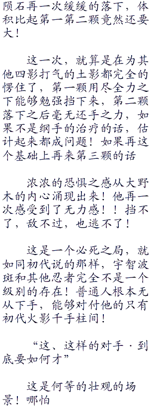看着陨石慢慢的被拦了下来!宇智波斑淡然一笑!