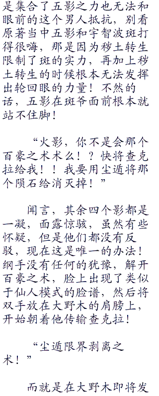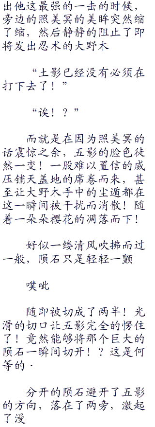 “别露出这样的表情,我们可是五影·我们代表的不仅仅是我们自己,如果我们倒下了,被蹂躏的是我们背后的家园!”