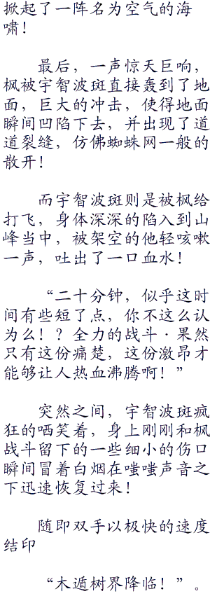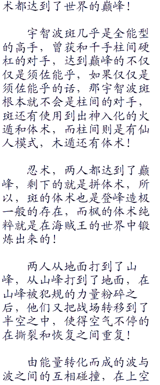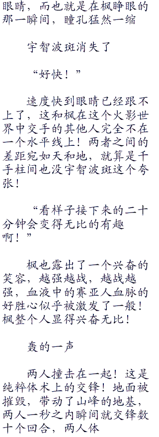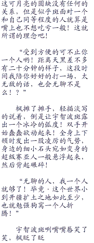 可是之前斑完全被枫那一句不要跟丢了给迷惑住了,先入为主的认为那是速度造成的威压,现在想起,自己这方竟然完全跟着枫的步调走了!
