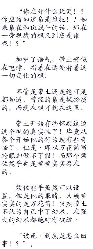 天空上,操着的黏土鸟的迪达拉和鬼鲛两个人面露震撼!眼前的情况根本无法用语言来形容!巨大的风压将他们两人卷入漩涡当中被吹飞出去!