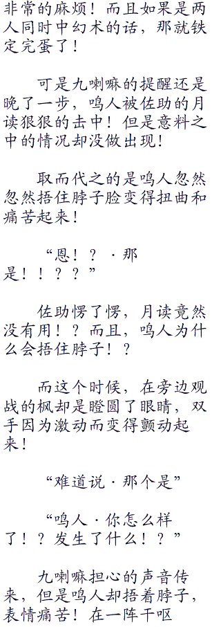 佐助的表情变得扭曲取来,按着脑袋露出扭曲的笑容!