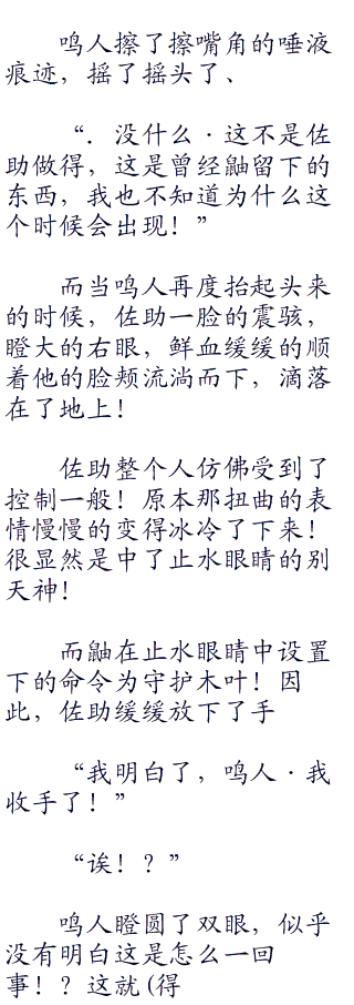 鸣人张了张嘴,显得有些无力,不管他怎么说,好像佐助都听不进去,咬了咬呀,鸣人继续说道。