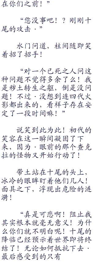 就算是柱间也感觉有些无可奈了!虽说他现在是秽土转生之躯,无法发挥出生前的力量,但是十尾的力量远超他的想象!