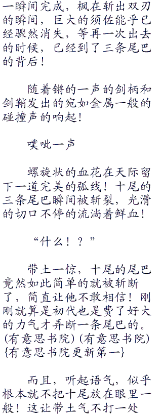 说完之后,十尾的三条尾巴朝着枫狠狠的横扫而去,破空之声传出轰鸣之声!仿佛一阵死亡之风一般朝着枫狠狠的撞去!