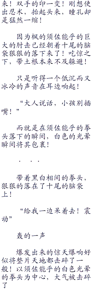 而站在须佐能乎中心的人影则是风华绝代的宇智波斑!不过他现在也显得非常的狼狈!和枫一般大口大口的喘着粗气!