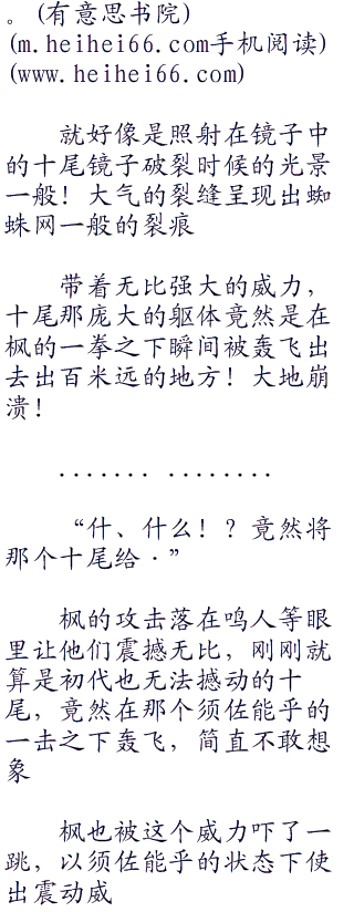 听了带土的话之后,枫面色抖了抖!回过头去,看着三个巨大的黑影朝着自己砸来,顿时皱了皱眉头。