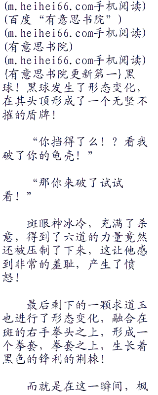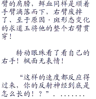 斑的动作还好,至少说可捕捉到,但是枫的速度简直快到发指!一切都只是发生在电光火石之间,斑就莫名其妙的掉了下来!