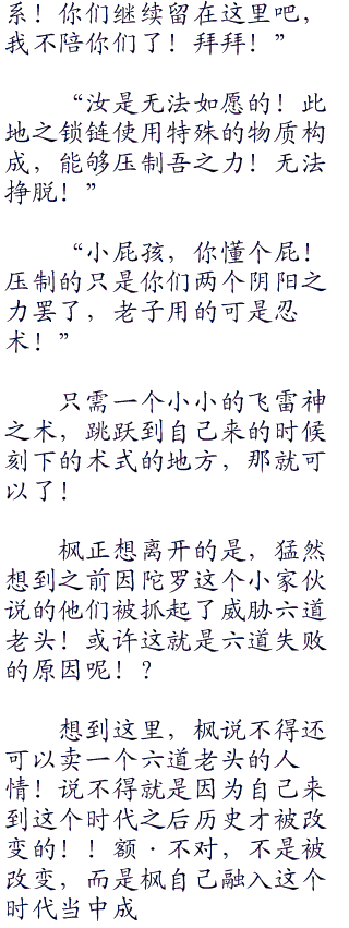 闭眼感受了一下!能够清晰的感受到自己的查克拉的波动!那是自己出来的瞬间留下来的飞雷神的术式!时间到了,只要移动到坐标的位置就好了!