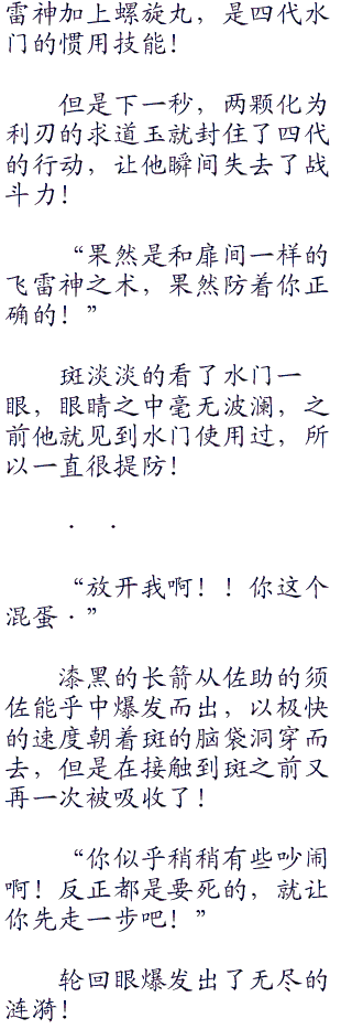 “你们的脑子似乎有些不好使啊!轮回眼能够吸收任何忍术,你们似乎知道吧!?忍术对我是起不了作用的,只有体术才能够击败我!但是啊”