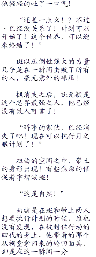 “天真!柱间,我很早以前就说过,你是看不见的·在那前方的,是更加遥远的梦想!”