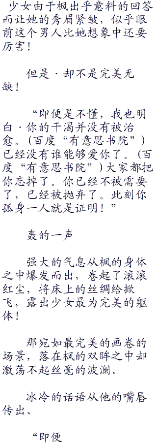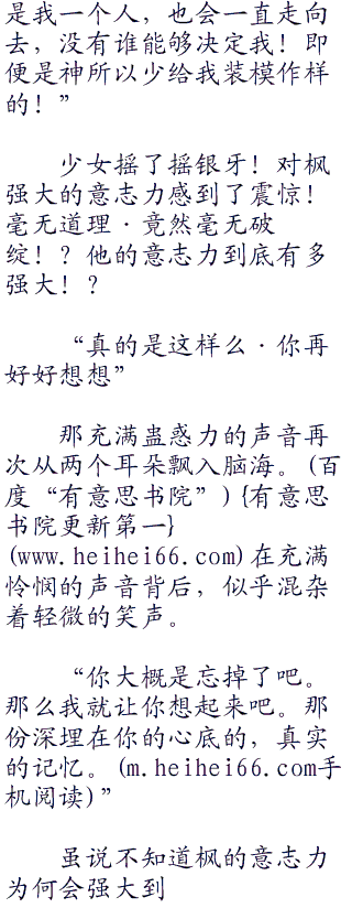 少女甜美的声音仿佛具有某种奇异的力量一般牵引着枫的听觉和思考!