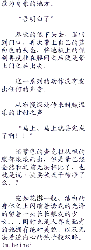 枫的思维完全的中断了,外界发生着什么,自己又在哪里,他全然不知,不·是无法知道,意识无法冲破那纯粹的银白色的屏障!