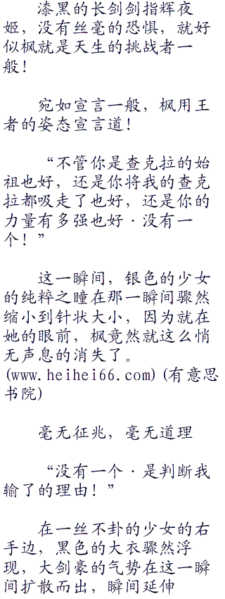 枫的嘴角露出了冰冷的笑容,就好似在嘲讽这个超然的绝色少女一般!